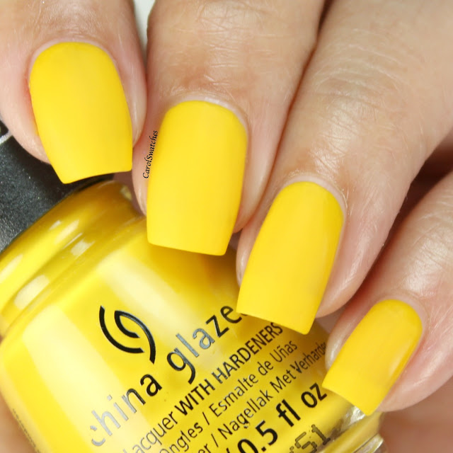This is a matte yellow, the formula is streaky and it needed 4 coats to reach opacity.